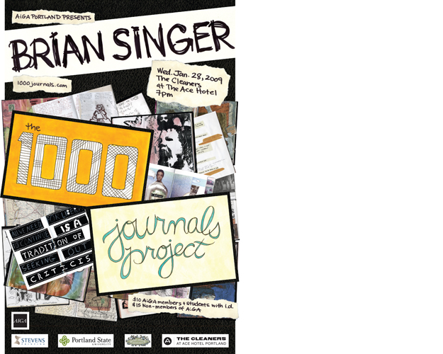 I volunteered my design services to AIGA Portland for a talk featuring the creator of the 1000 journals project. The poster folded down for distribution as a brochure.
